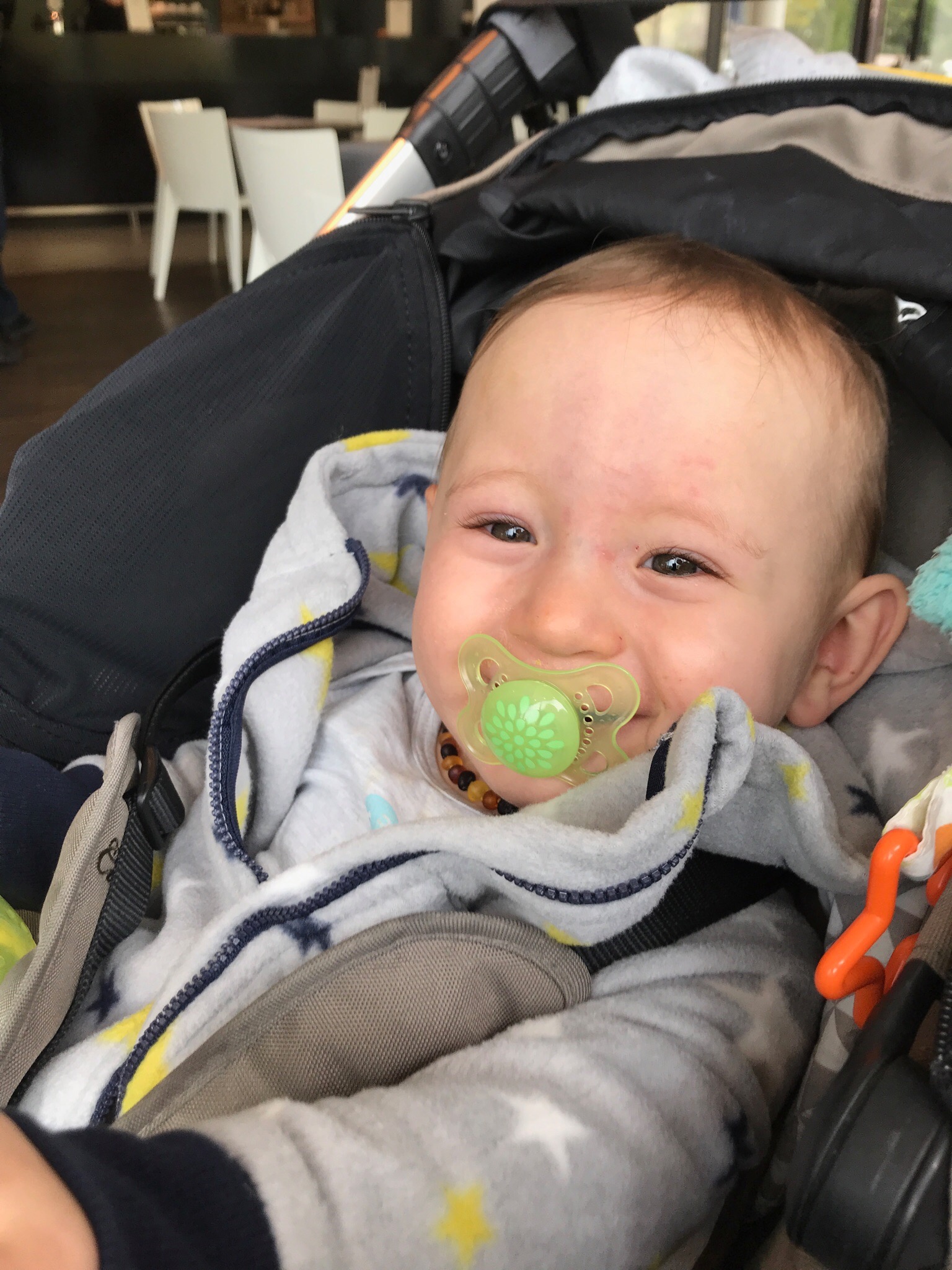 Momentan hat Lias damit begonnen, eine blode Mode zu entwickeln. Lias zieht sich selbst den Latz ab beim Essen. Andrin hat das beobachtet und macht es natürlich prompt nach. Wobei bei Andrin kann man damit das gugus-dada Spiel spielen und er hat eine beiden Freude dabei.