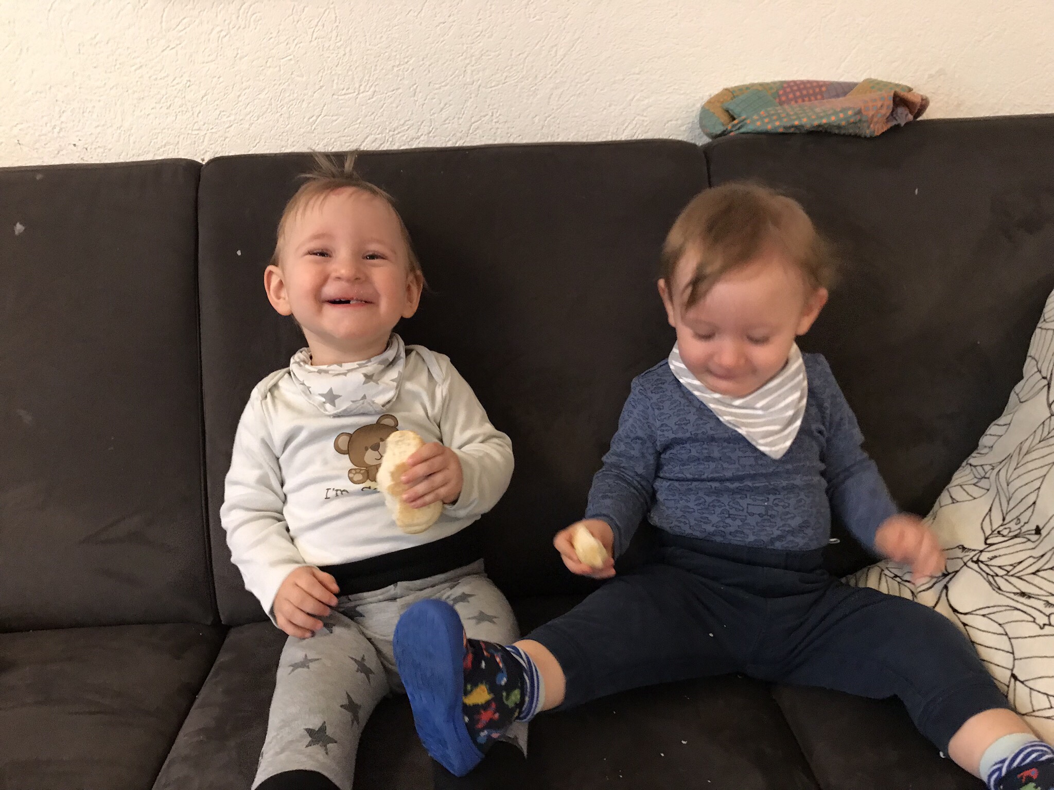 Ihr ward am Sonntag bis 21:30 auf und habt den ganzen Tag fast nicht geschlafen. Überall neues überall spielen und als wir euch dann ins reise bettli gelegt haben wars ihr innert Minuten im Traumland.