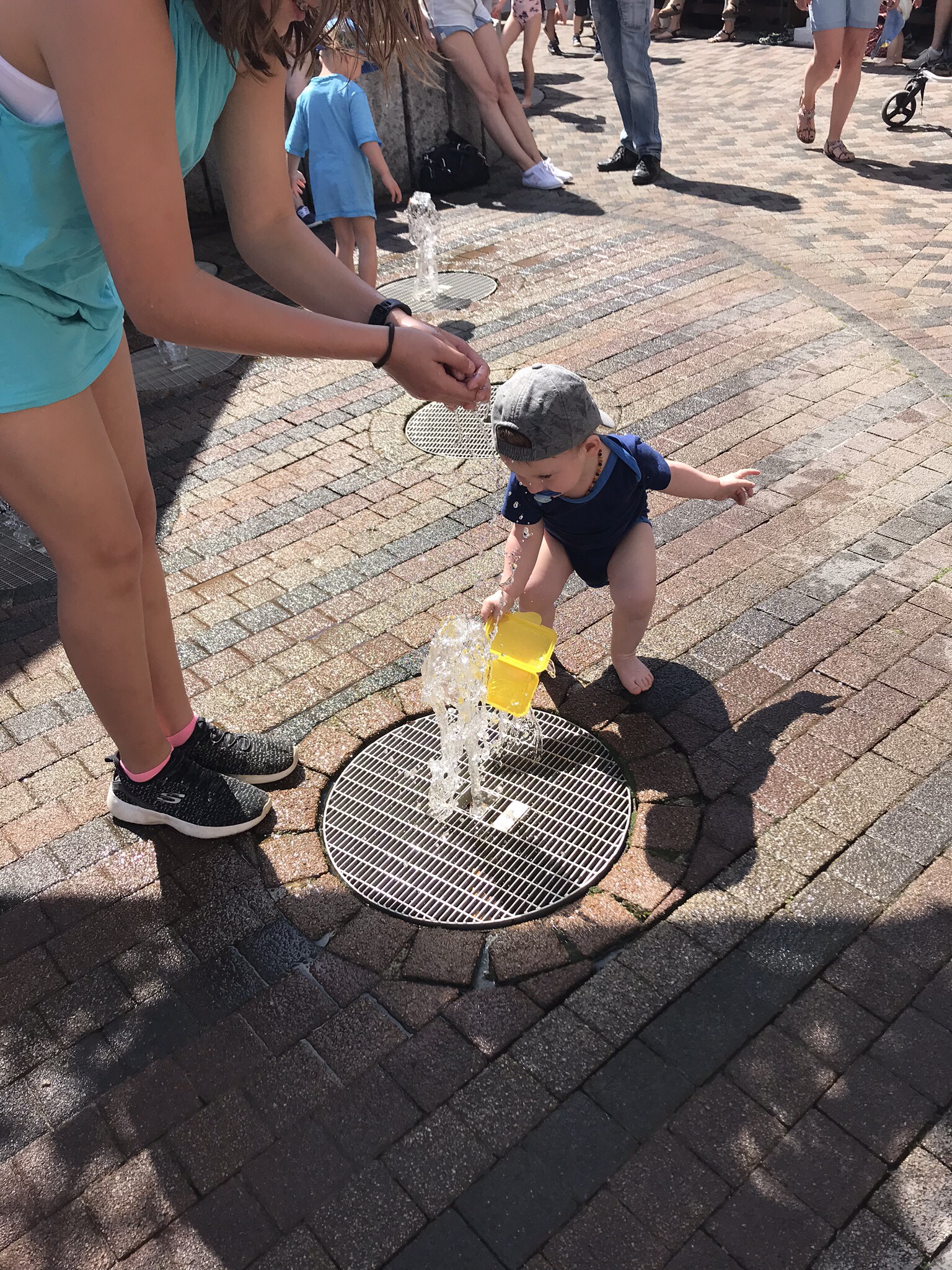 Am Sonntag war sehr schönes Wetter und ihr habt euch bei den Wasserspielen innert Sekunden vollkommen nass gespritzt und gelacht und Spass gehabt. Dann ging’s weiter und wir sind mit euch Karussell gefahren das mochtet ihr auch sehr gerne.