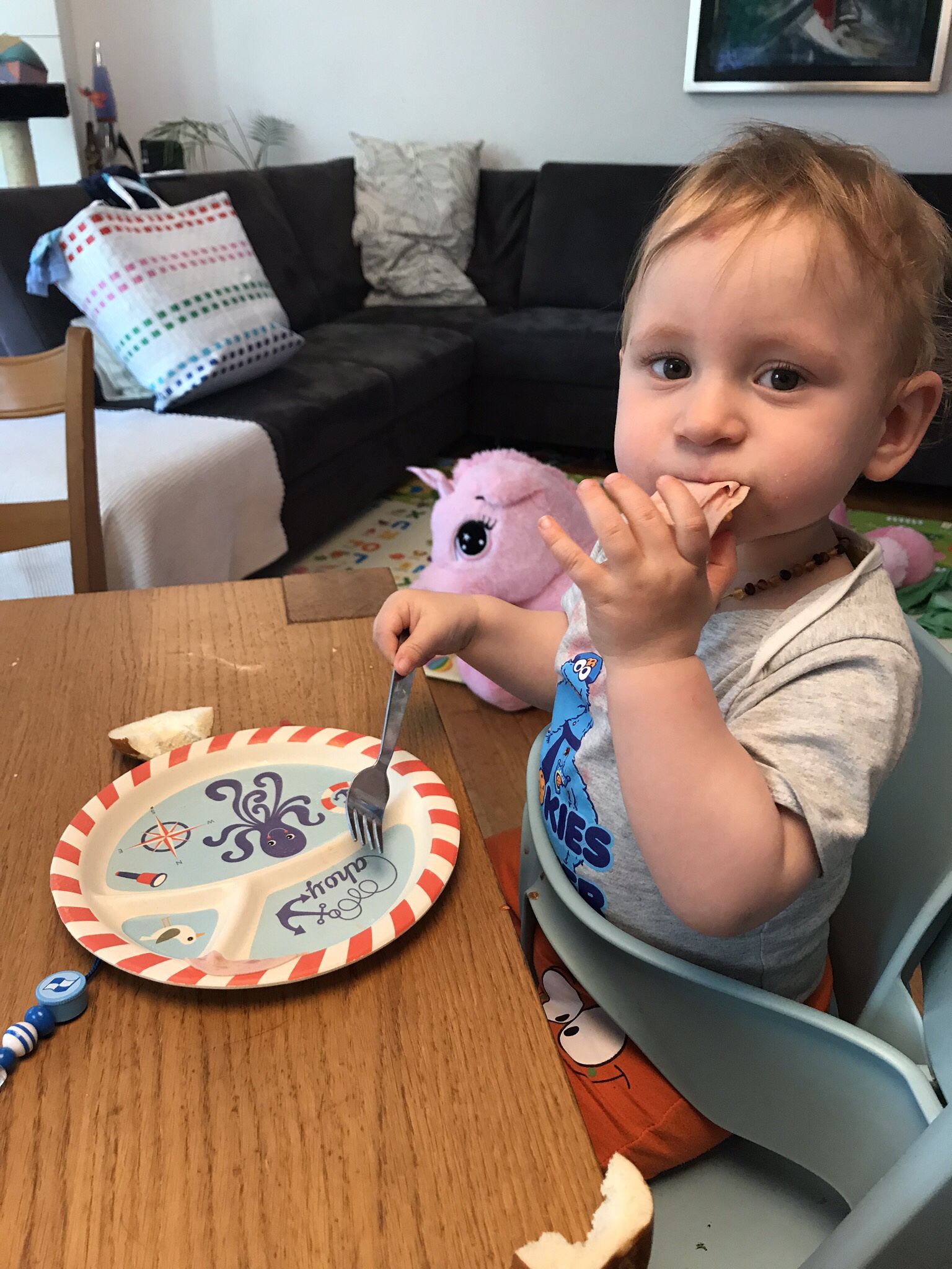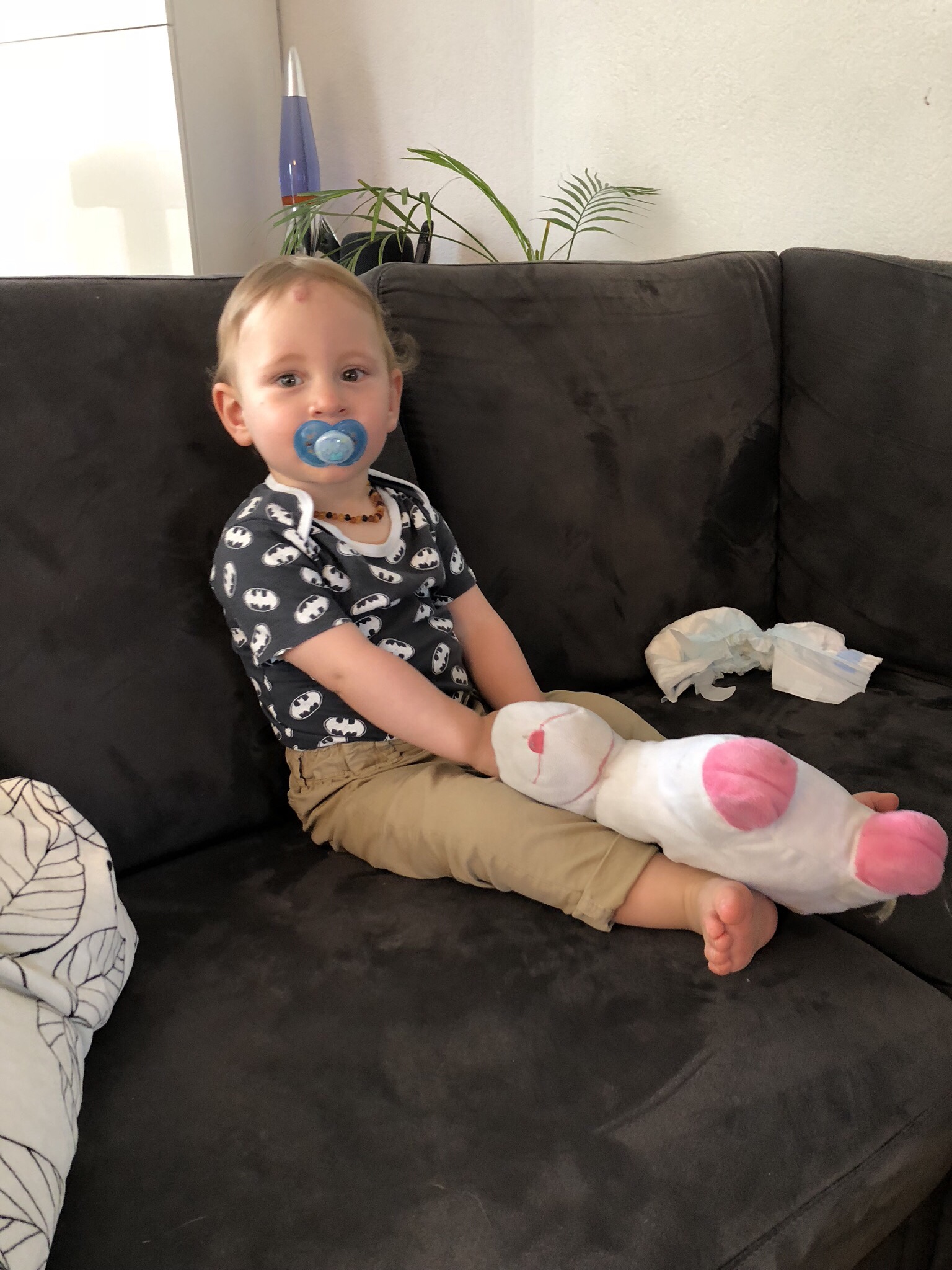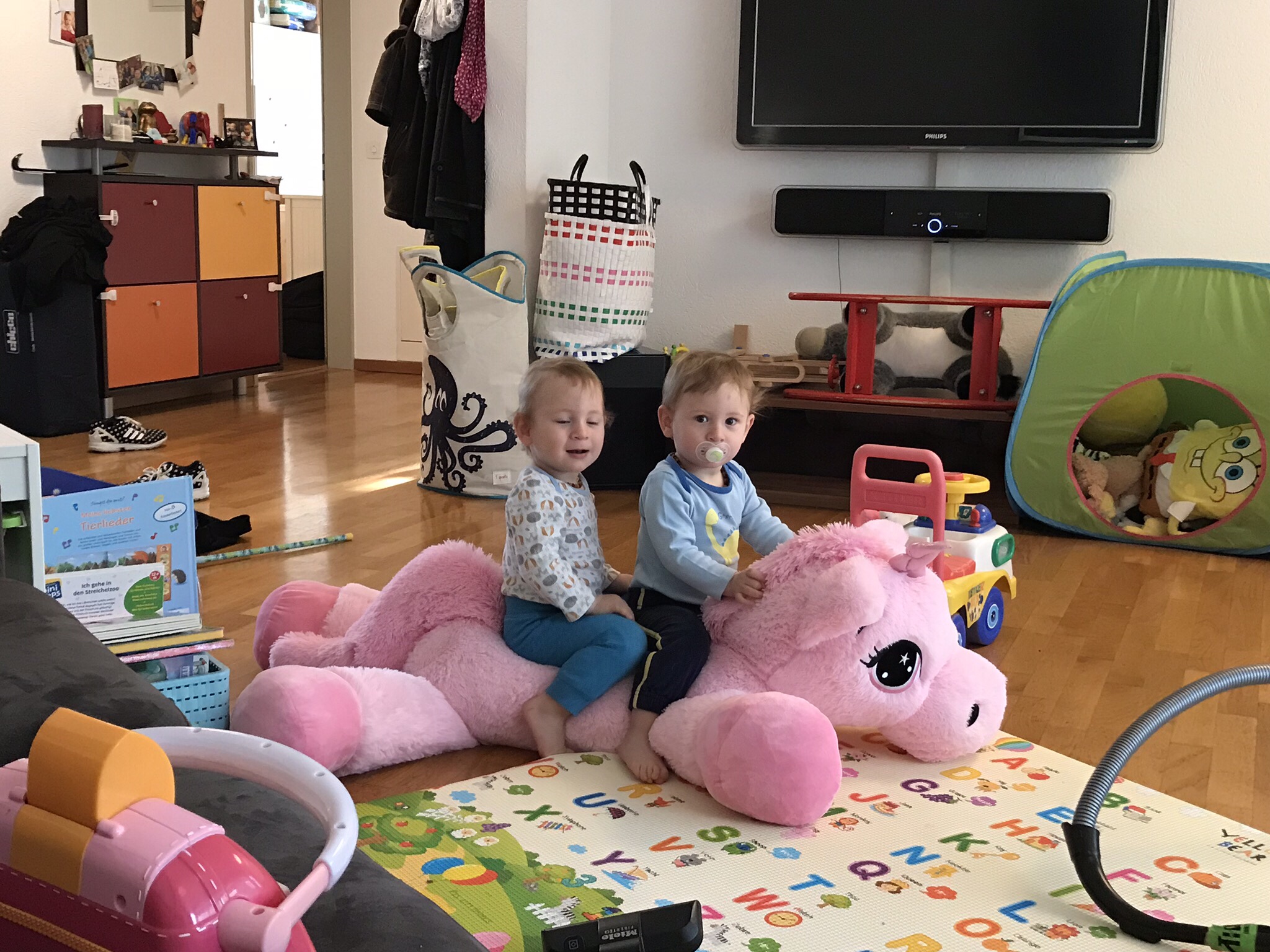 Andrin hat fast immer sein Einhorn dabei. Er benötigt es zum einschlafen und um sich zu beruhigen. Häufig nehmen wir das Ding auch im Kinderwagen oder im Auto mit weil er einfach nicht auf sein Einhorn verzichten kann.