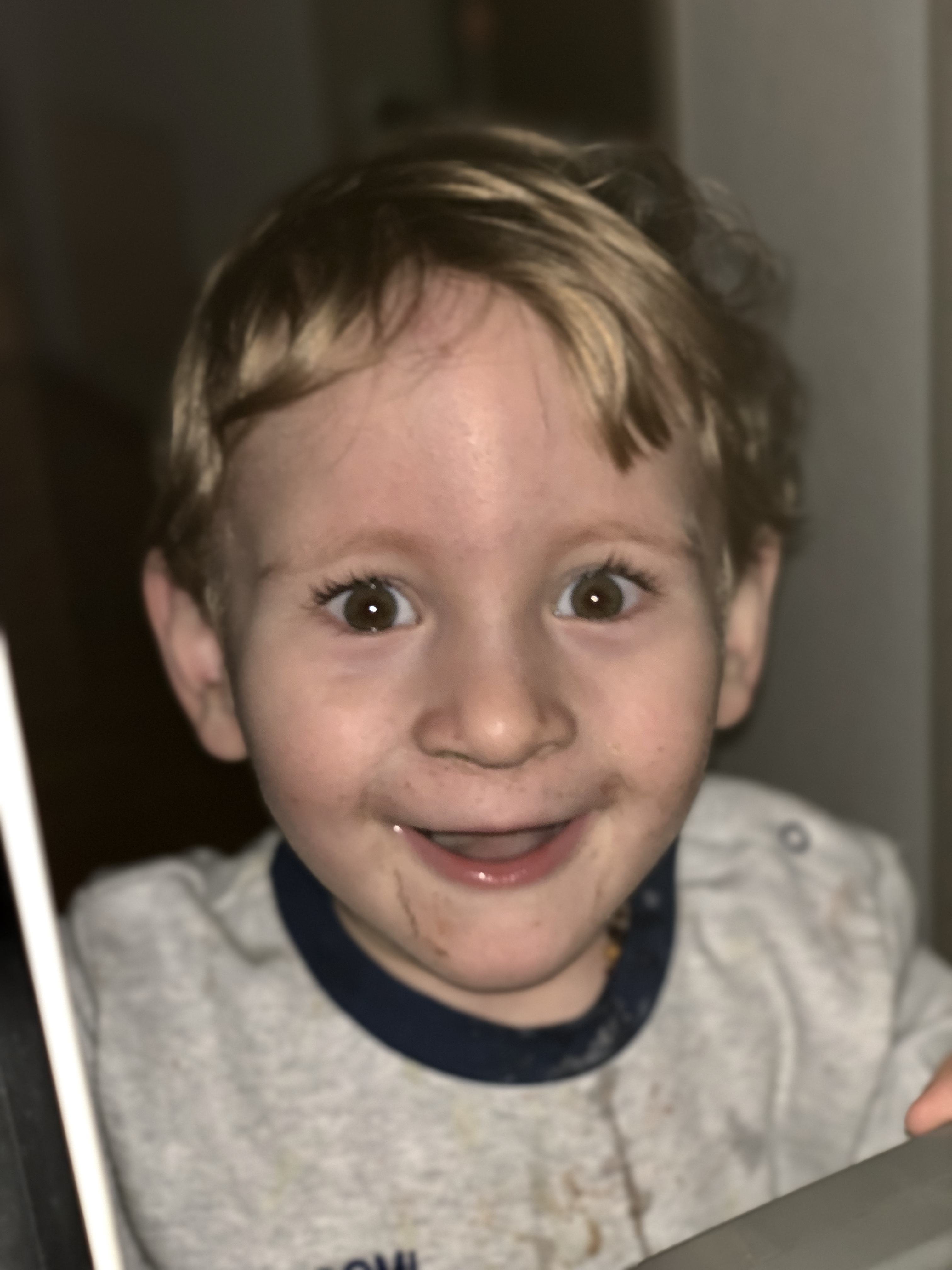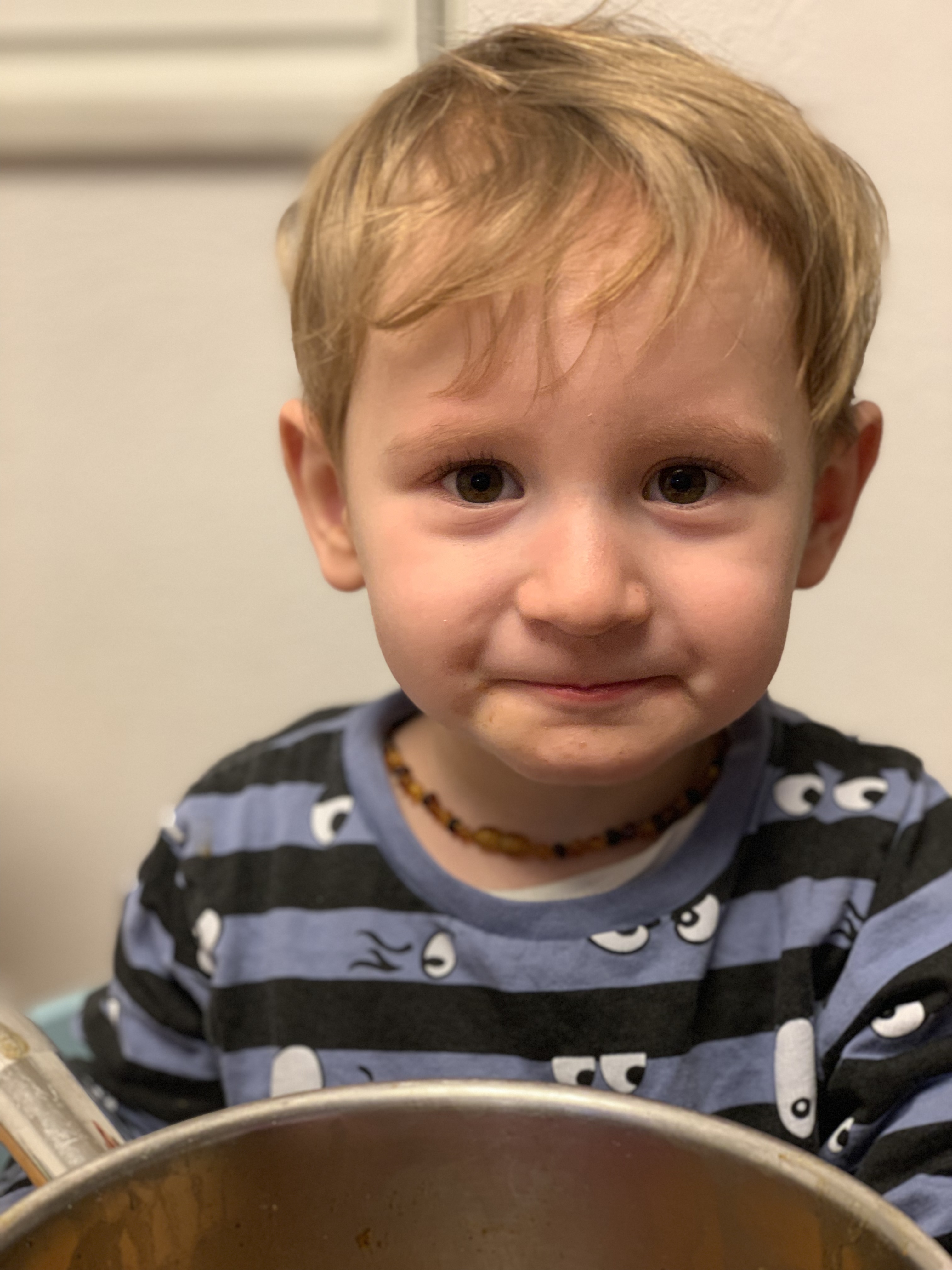 Ein Einkaufs Shopping wagen mit dem ihr heute den ganzen Tag stolz bin und her gefahren seid und mit dessen Holz Gemüse und so gespielt habt.