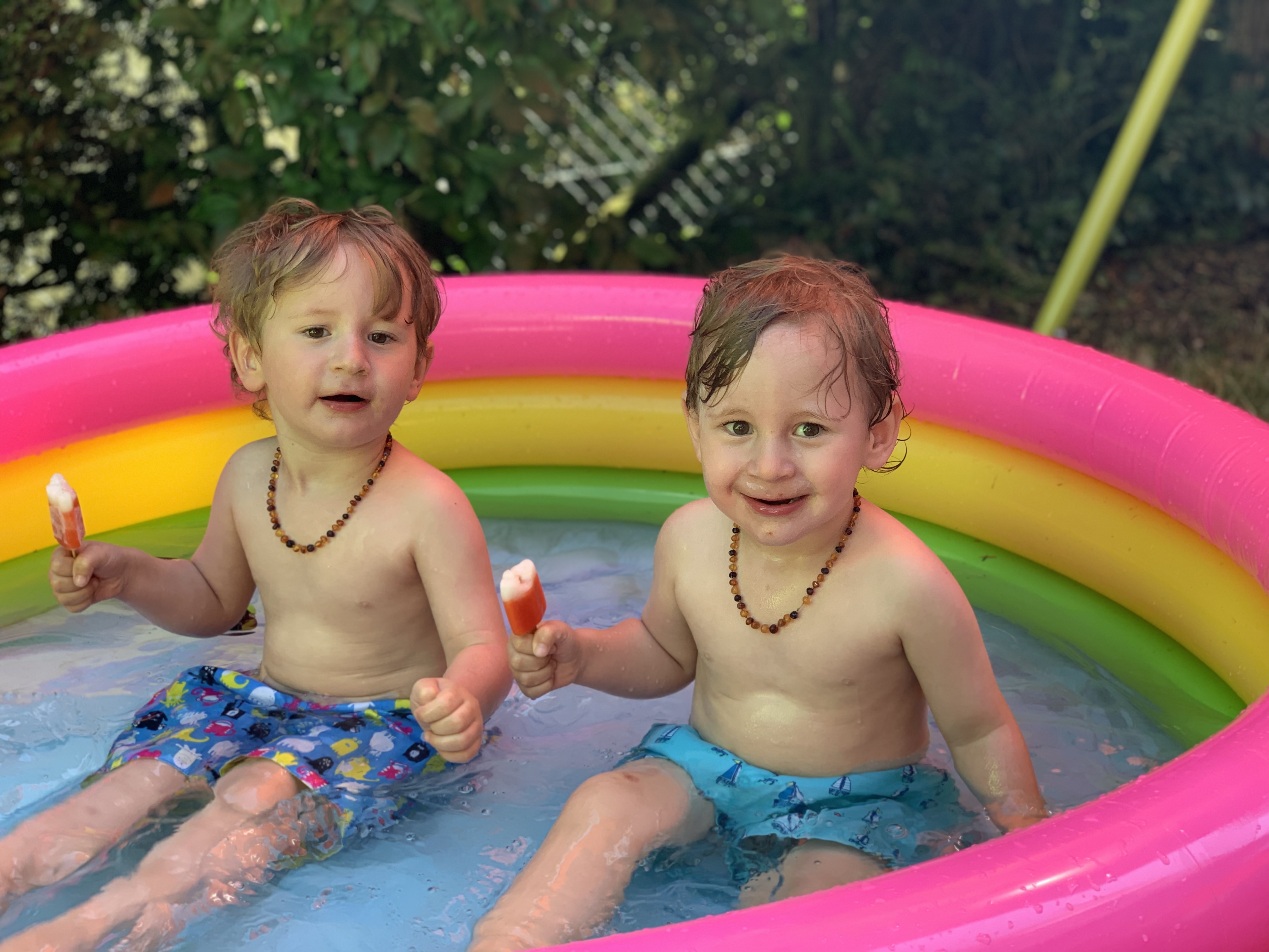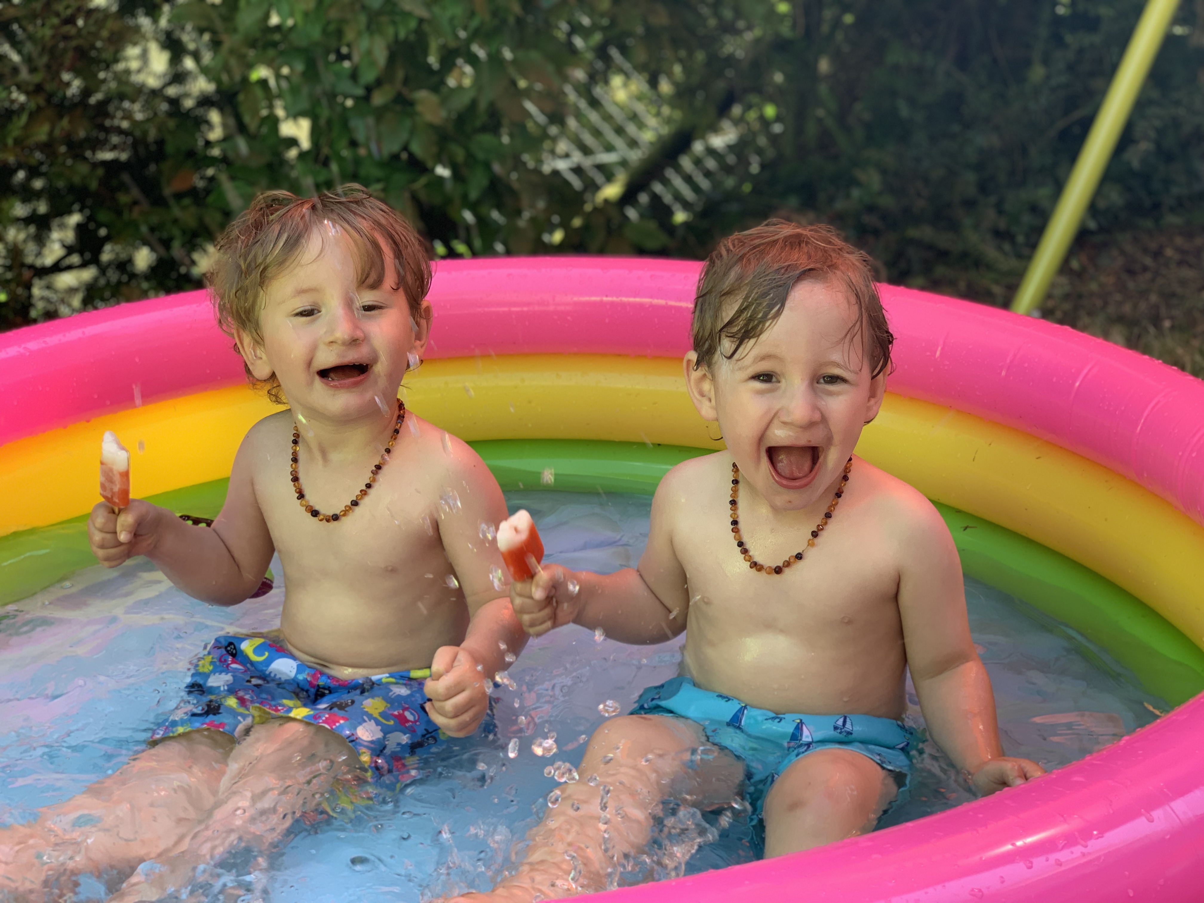 Am Freitag waren wir im geiselweid in der Badi. Dort hatte es ein Trampolin das ihr geliebt habt. Ihr seid drauf rumgesprungen und habt euch unterspicken lassen